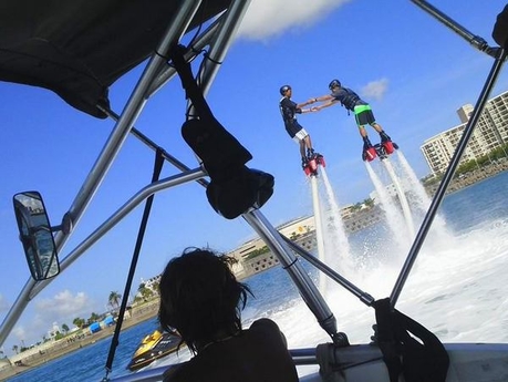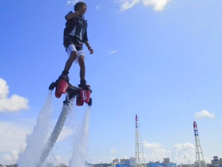 今とっても話題の!! ジェットのパワーで水上を体がふわっと浮き上がる、大人気マリンスポーツ「フライボード」!!